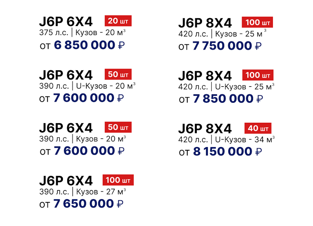 Предложение действует только на 460 самосвалов J6P 2023 года выпуска с колёсными формулами 6x4 и 8х4: